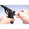 まずはじめに銃本体よりマガジンを抜き取る。基本的に撃つとき以外は、銃本体からマガジンを抜き取っておくようにしよう。これにより、誤って暴発させてしまうようなことはない。