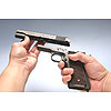 002銃本体からマガジンを抜き取る。マガジンキャッチボタンを押すと、グリップ下部より抜き取れる。