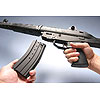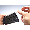 002はじめにマガジンを本体より抜き取る。マガジンキャッチボタンは、本体の右側にあり、グリップを握ったまま操作できる。