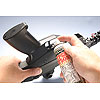012トリガー部分などの可動部分には、エアガン専用のメンテナンスオイルを塗布しておこう。こうすることで、常に快適に作動する。